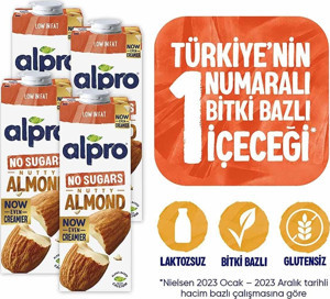 Şekersiz Badem Sütü 4X1 Lt Mega Avantajlı Paket
