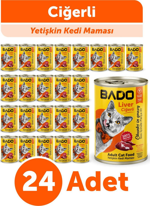 Bado Yetişkin Yaş Kedi Maması Ciğerli 400GR 24lü