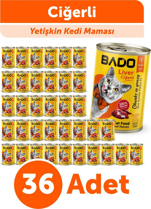 Bado Yetişkin Yaş Kedi Maması Ciğerli 400GR 12Li