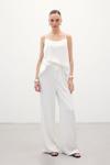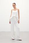 Sateen markasının şıklığı ve rahatlığı bir araya getiren bağcıklı salaş pantolonu, kadınlar için özel olarak tasarlanmıştır.