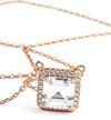 Baget Swarovski Taşlı 925 ayar Gümüş Rose Kare Tek Taş Kolye
