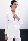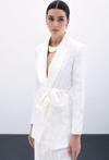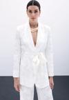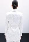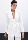 Sateen Bağlamalı Jakarlı Ceket - Ekru