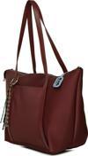 Bagmori Renkli Püskül Detaylı Saten Tote Çanta Bordo