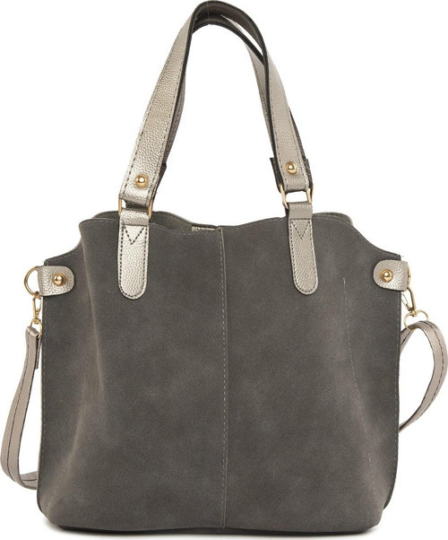 Bagmori Üç Bölmeli Çıtçıt Detaylı Nubuk Çanta Gri