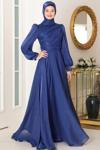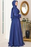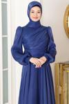 Esilanur Bersu Önü Pul Boncuk İşlemeli Tesettür Abiye Lacivert