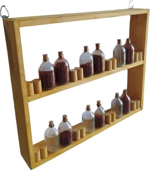 Ürün görseldeki ile birebir aynı gönderilir. Ürün ahşap çam ağacı imalatı'dır. Sipariş İçeriği: 1 adet ahşap terek baharatlık mutfak organizer.uzunluk 56 cm,yükseklik 46 cm,derinlik 8,5 cm,kalınlık 1,5 cm. 12 adet mantar tapalı paşabahçe cam baharatlık şişesi,her biri 100 cc. Renk:açık sarı. Arkasında 2 adet paslanmaz metal askılık vardır,ayrıca duvara asılabilmesi için 2 şer adet vida ve dübel gönderilir. Uzun süreli kullanım için temizliğinin nemli bez ile yapılması önerilir.