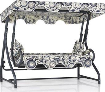 Erinöz Salvia 3 Kişilik Bahçe Salıncağı - Dünya/Saat Desenli - Antrasit Gövde - Yatarlı