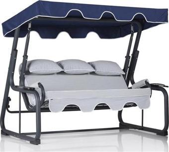 Erinöz LUKA 3 Kişilik Sabit Bahçe Balkon Salıncağı - Minder: Lacivert Çizgili Tente: Lacivert