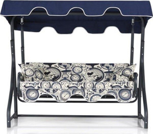 Erinöz Ruta 3 Kişilik Bahçe Balkon Teras Salıncak - Minder: Dünya & Saat Tente: Lacivert