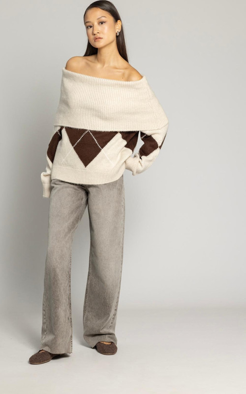 Madonna yaka tasarımı ile dikkat çeken bu kazak, stilinizi ön plana çıkarıyor.