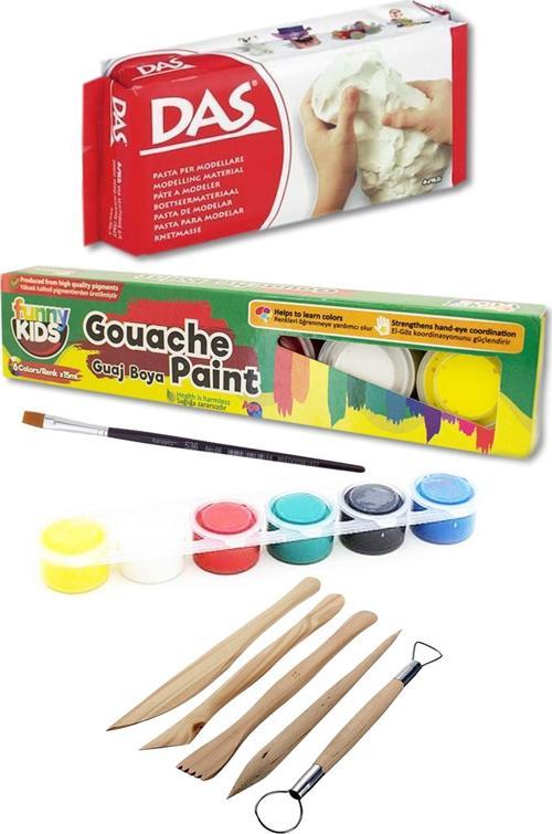 İçeriği: 1 Adet 500gr. Das Beyaz Hamur 1 Adet 6'lı Funny Kıds Guaj Boya 1 Adet Fanart Fırça 1 Adet Modelaj