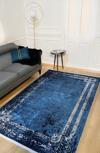 Halinet Balasiha Mavi Çerçeveli Etnik Modern Desenli Makinada Yıkanabilir Hav Toz Vermez Leke Tutmayan Kaymaz Taban Dijital Makine Baskı Salon Yolluk Mutfak Halı