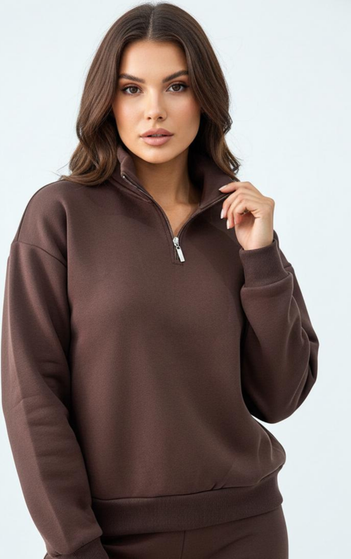 Balenbi Kadın 3 İplik İçi Polarlı Yarım Fermuarlı Oversize Sweatshirt 1112