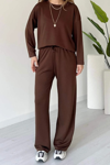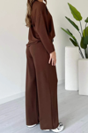 Ersefa Tarz Kadın Modern Moda Normal Bel Boru Paça Devrik Yaka Geniş Kalıp Balıkçı Yaka Triko Alt-Üst Takım