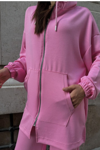 - Rahatlık ve şıklığı bir arada sunan oversize kapüşonlu tunik takım, günlük kullanım için idealdir.