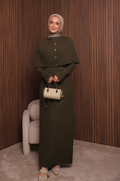 Balenbi Kadın Sık Örgü Pelerinli Triko Tesettür Elbise Std Beden 1150