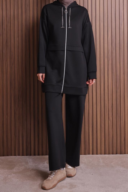BK1121 Balenbi Kadın Zincir Kordonlu Kapüşonlu İthal Scuba Tesettür Takım 1121