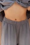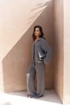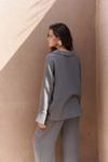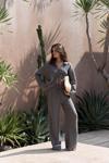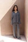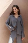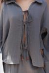 Müslin takım, yakalı, uzun kollu, önü ahşap boncuklu ve ipli gömlek.