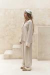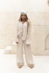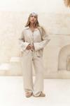 Keten Kumas Palmiye Baskılı Cep Taş Detaylı Takım Krem - Image 1
