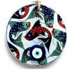 Balık desenli duvar süsümüz 12 santimetre çapındadır. Ürünümüz ip dahil 24 santimetre boyundadır. Ürünümüz füzyon cam malzeme kullanılarak üretilmektedir.