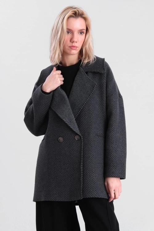 Çetinkaya Fithit 5320 Kadın Loose Fit Kaşe Kaban Antrasit - Image 1