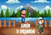 Balık Tutan Çocuklar Doğum Günü Afişi - 50x70 Cm
