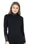 Uzun kollu balıkçı yaka, dantel detaylı çok şık kadın tişört modelidir.