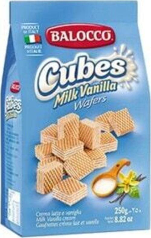 Dört kat yumuşak vanilya kreması ile yapılan çıtır gofret küpleri koruyucu hidrojenize edilmiş yağ ve boya içermez.