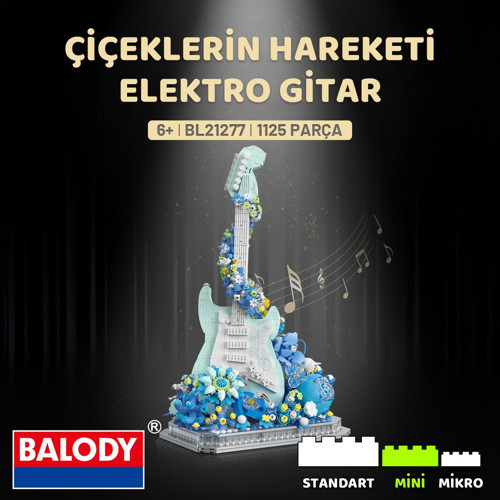 Balody'nin Çiçeklerin Hareketi serisine ait Elektro Gitar modeli, mavi tonları ve zarif çiçek detaylarıyla müzik tutkunlarının favorisi olacak. Gerçekçi gitar tasarımı, dekoratif görünümü ve ışıklı tabanıyla koleksiyonunuza şıklık katın!