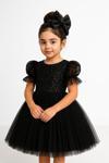 Balon Kol Pul Payet Kız Çocuk Tütü Elbise M00751 SİYAH
