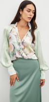 Sateen Balon Kollu Desenli Gömlek - Çağla Yeşili