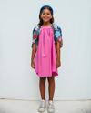Pembe rengi ile dikkat çeken elbise, 11-12 yaş aralığındaki çocuklar için uygundur.