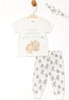 Rakun Baby Tavşan Baskılı 3 Parça Kız Bebek Ekru Renk Takım 218259
