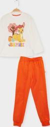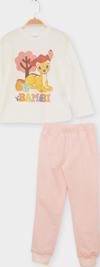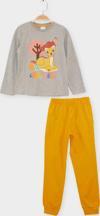 Ürün Özellikleri: Bisiklet yaka uzun kol baskılı üst, beli lastikli paçalar manşetli alt 2'li paijama takımı