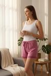 Bambu Fitilli Kadın Ev Şortu Bacak Dantel Detaylı Ev Giyim Fuşya