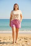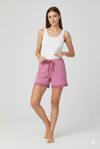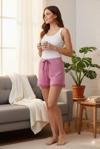 Bambu Fitilli Kadın Ev Şortu Bacak Dantel Detaylı Ev Giyim Pembe