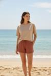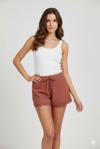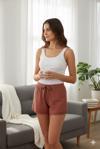 Bambu Fitilli Kadın Ev Şortu Bacak Dantel Detaylı Ev Giyim Taba