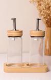 Bambu Kapaklı Cam Yağlık & Sirkelik Seti – 2’li Standlı | Şık ve Pratik Sunum