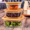 - Bambu Kapaklı Vakumlu 3'lü Kare Cam Saklama Kabı Seti (750-525-380 ml)