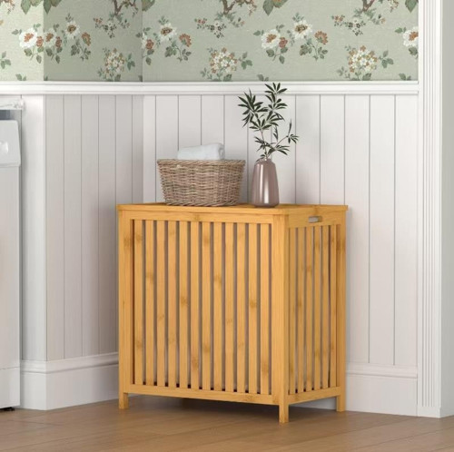 Bambu malzemenin sağlam ve dayanıklı yapısı, uzun ömürlü kullanım imkânı sağlarken; doğal dokusu sayesinde banyo ve çamaşır odalarına sıcak ve dekoratif bir görünüm kazandırır.