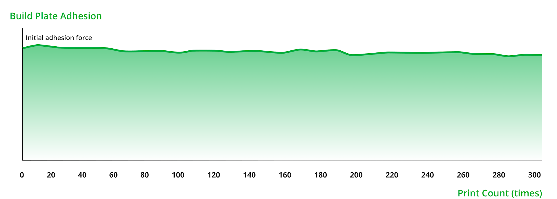 SuperTack kaplama dayanıklıdır ve yoğun kullanımdan sonra bile yapışkan özelliğini korur. Bu sayede baskı tablasının ömrü uzar, baskı maliyetleri düşer (300 baskıdan sonra %20’den az yapışma kaybı) ve karbon salınımı azalır.