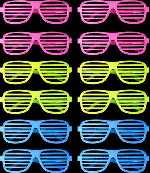 Retro Neon Fosforlu Panjur Gözlük 12 Adet – 80’ler 90’lar Parti Stili