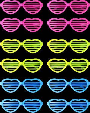 Retro Neon Fosforlu Kalp Panjur Gözlük 12 Adet – 80’ler 90’lar Parti Stili