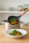 Ürün Hikayesi: Şık bambu saplı siyah silikon kevgir, mutfakta sağlıklı ve güvenli kullanım sağlar. Yüksek ısıya dayanıklı yapısıyla uzun süreli kullanım için idealdir.
