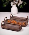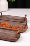 Bambum 3 Parça Pavlonya Deepwood Ahşap Sunum Seti – Kulplu Dikdörtgen Servis Tabakları | Doğal ve Zarif Sunumlar