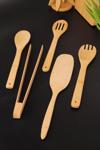 5 Parça Bambu Mutfak Gereçleri Seti – Spatula, Servis Kaşığı ve Maşa | Doğal ve Dayanıklı