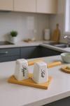 tuzluk biberlik, saplı tuzluk, bambu saplı baharatlık, porselen baharatlık, Bambum Fosh, modern baharatlık, tasarım baharatlık, menaj takımı, ahşap standlı tuzluk, porselen tuzluk