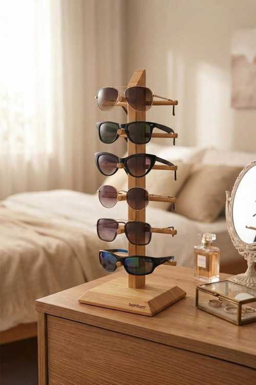 Bambum Lezay - 6 Katlı Doğal Bambu Gözlük ve Takı Standı