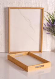 Bambum Marbella tepsi, 2’li mermer desenli tepsi seti, beyaz mermer desenli tepsi, büyük ve küçük boy tepsi, sunum tepsi seti, dekoratif tepsi, kahvaltı sunum tepsisi