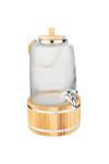 bambum cam sebil, bambu kapaklı cam sebil, 3 litre içecek sebili, ahşap standlı sebil, cam limonata sebili, sağlıklı cam sebil, sunum sebili